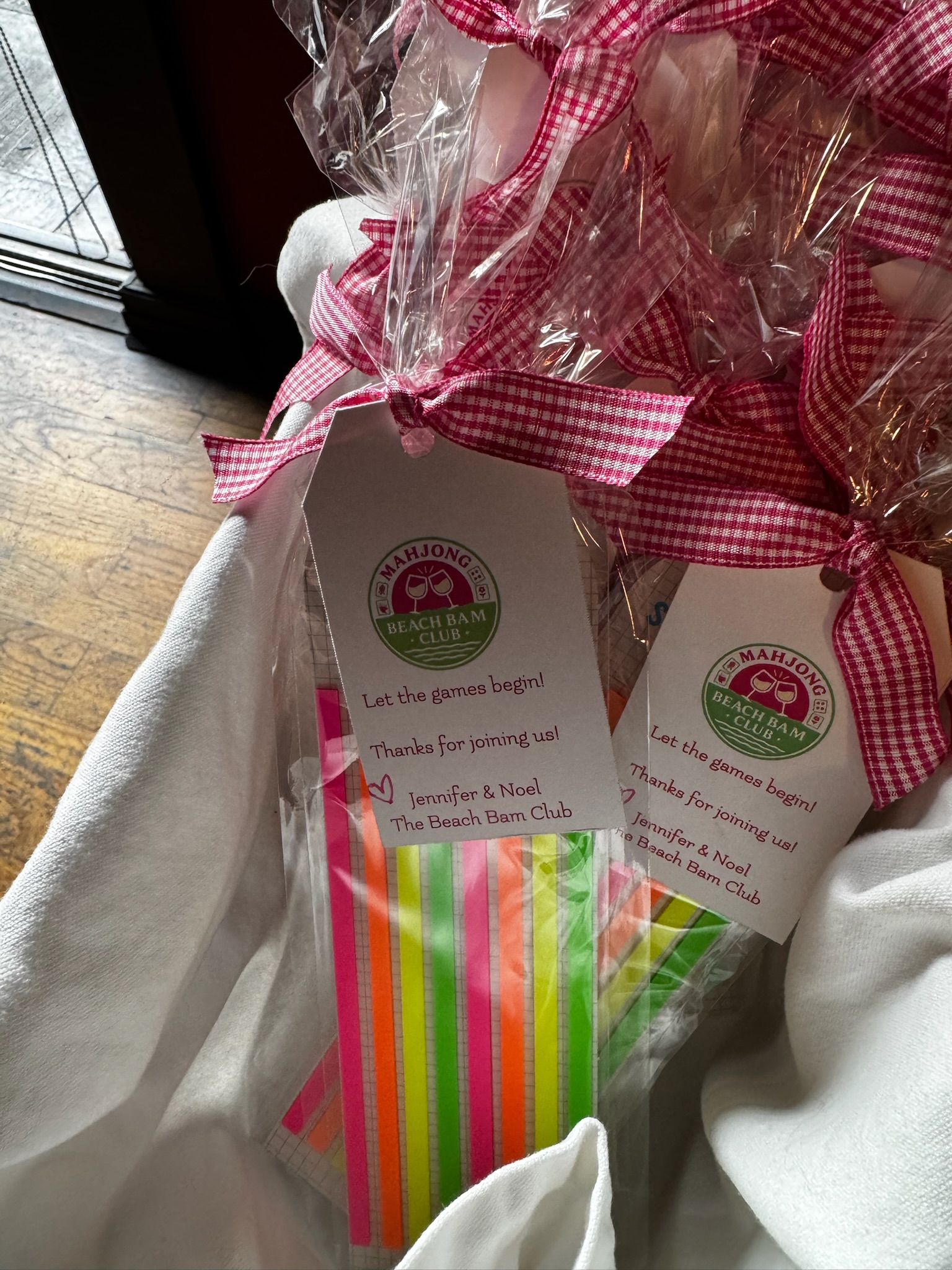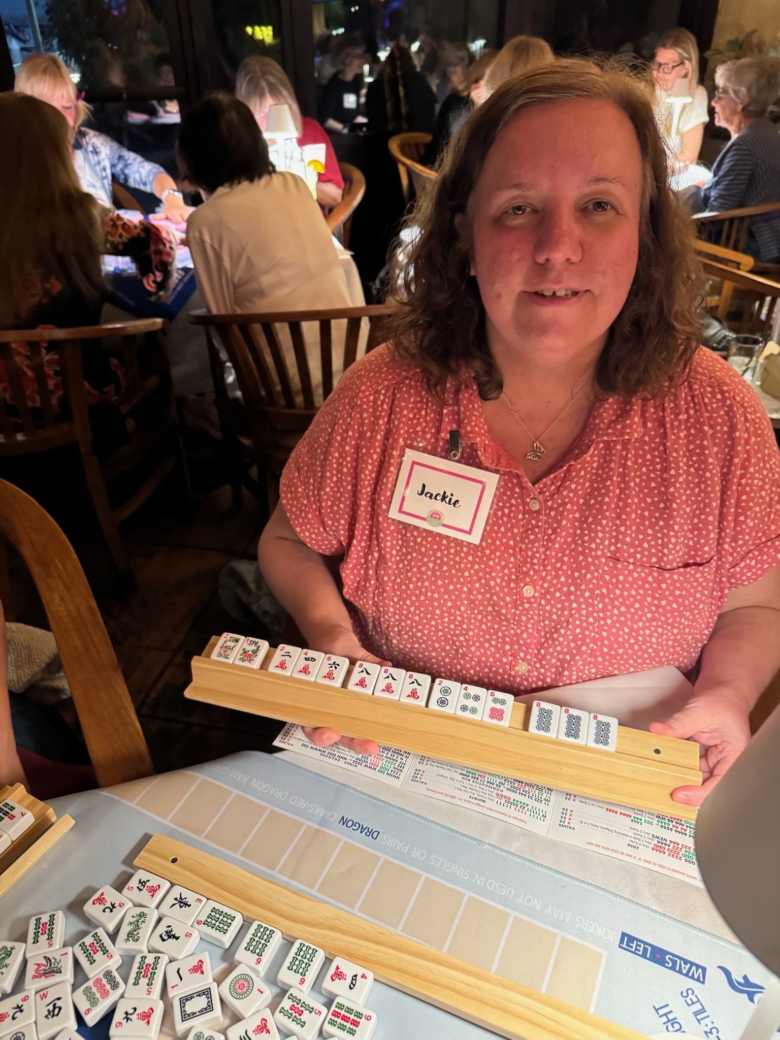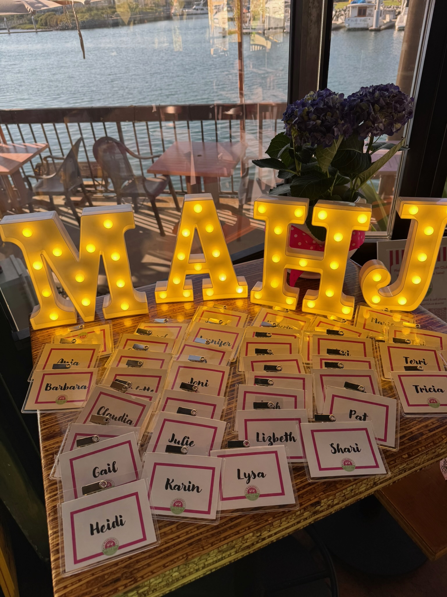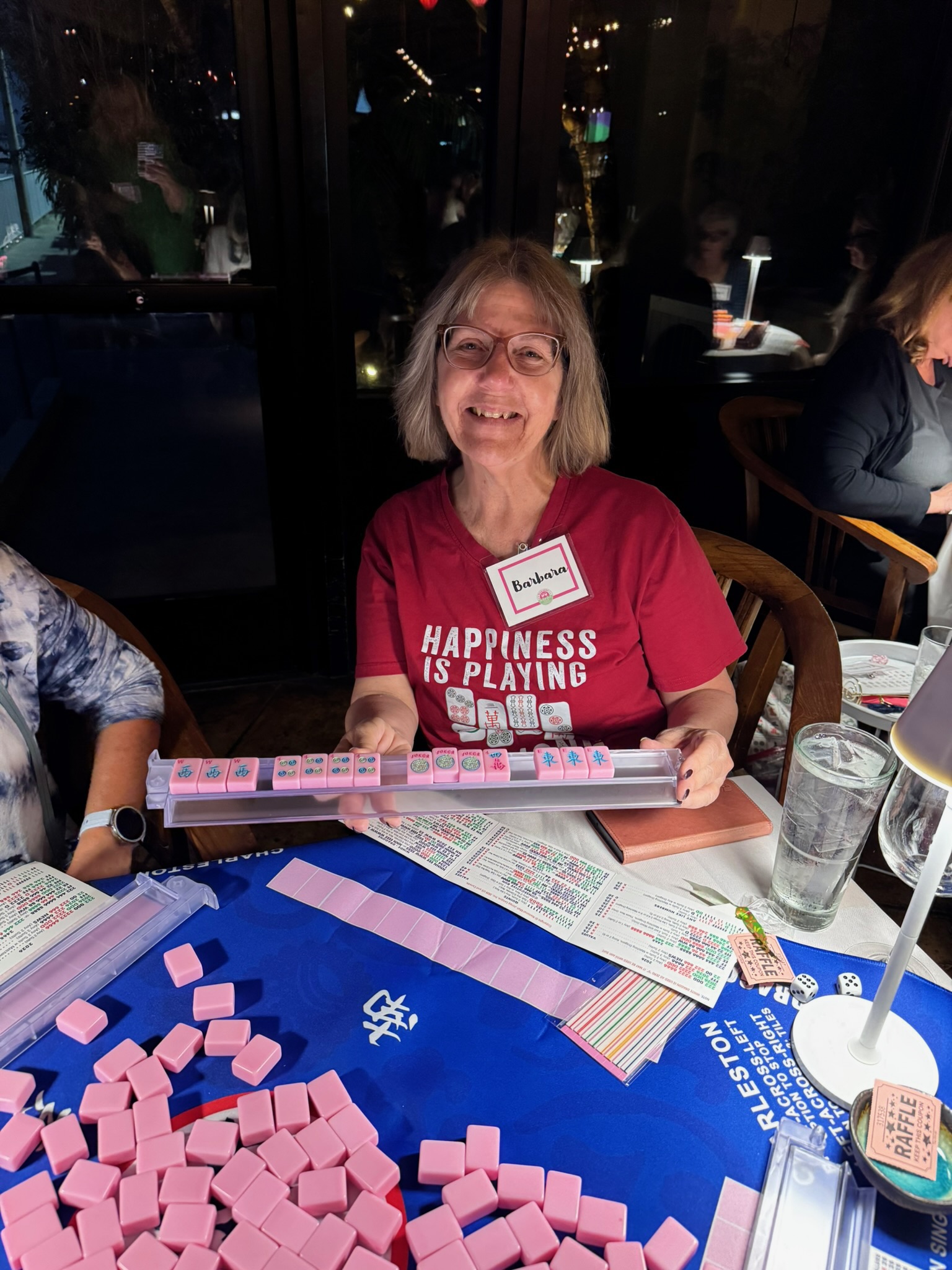 We host free open play events thanks to generous local venues that share their space with us. And we put real care into creating a warm, welcoming environment. We bring printed name tags, fresh flowers, Mahjong decor, tablecloths, lamps, side tables, welcome gifts, raffle prizes, and of course, the beloved mini animals you collect when you Mahjong.