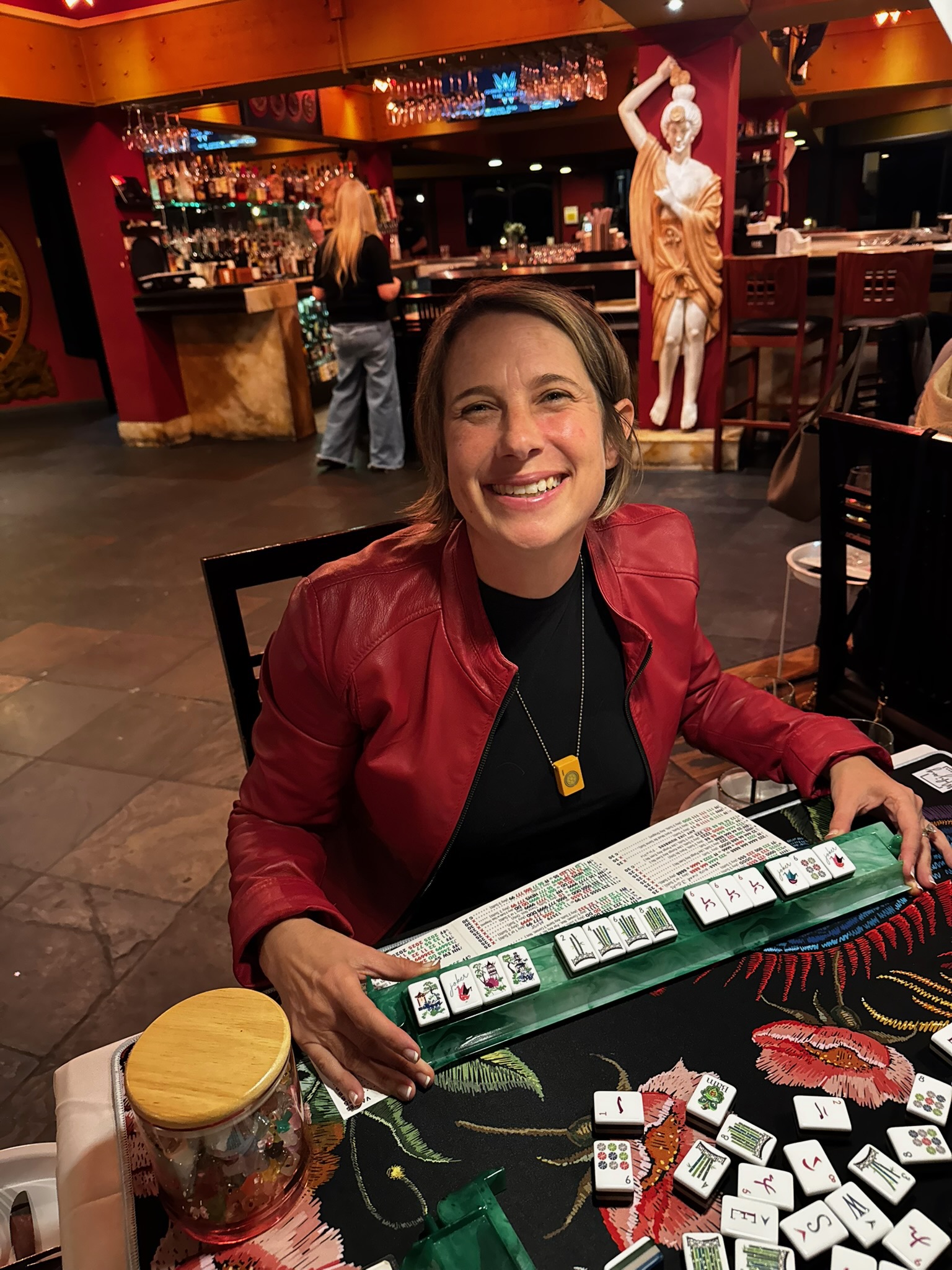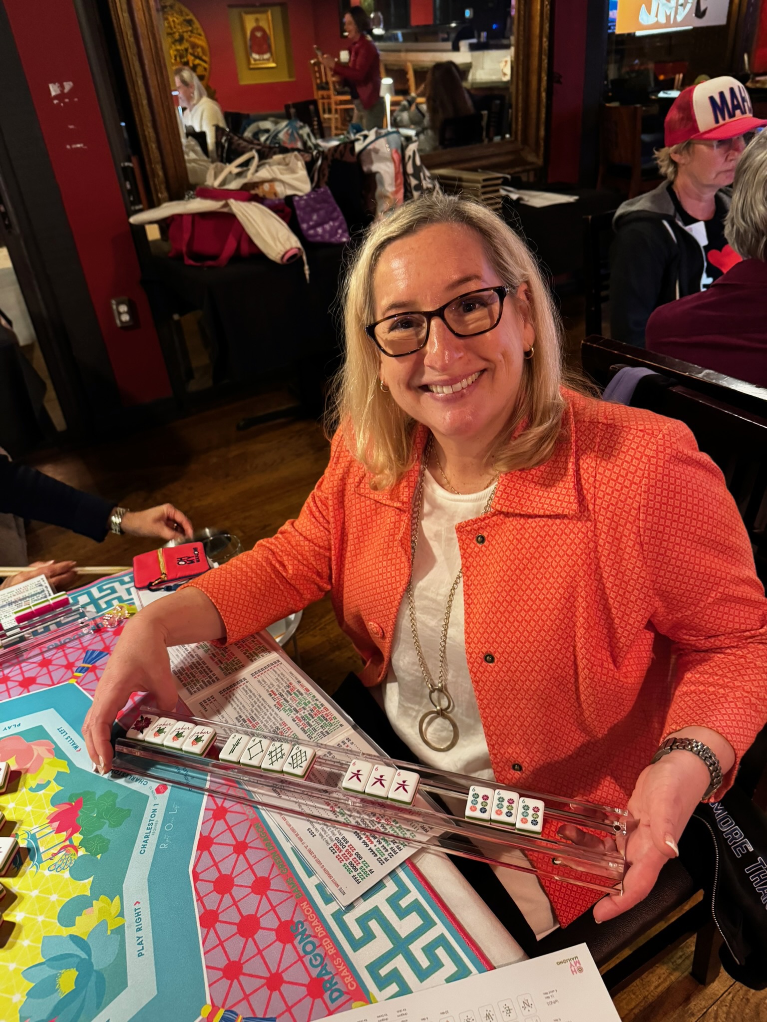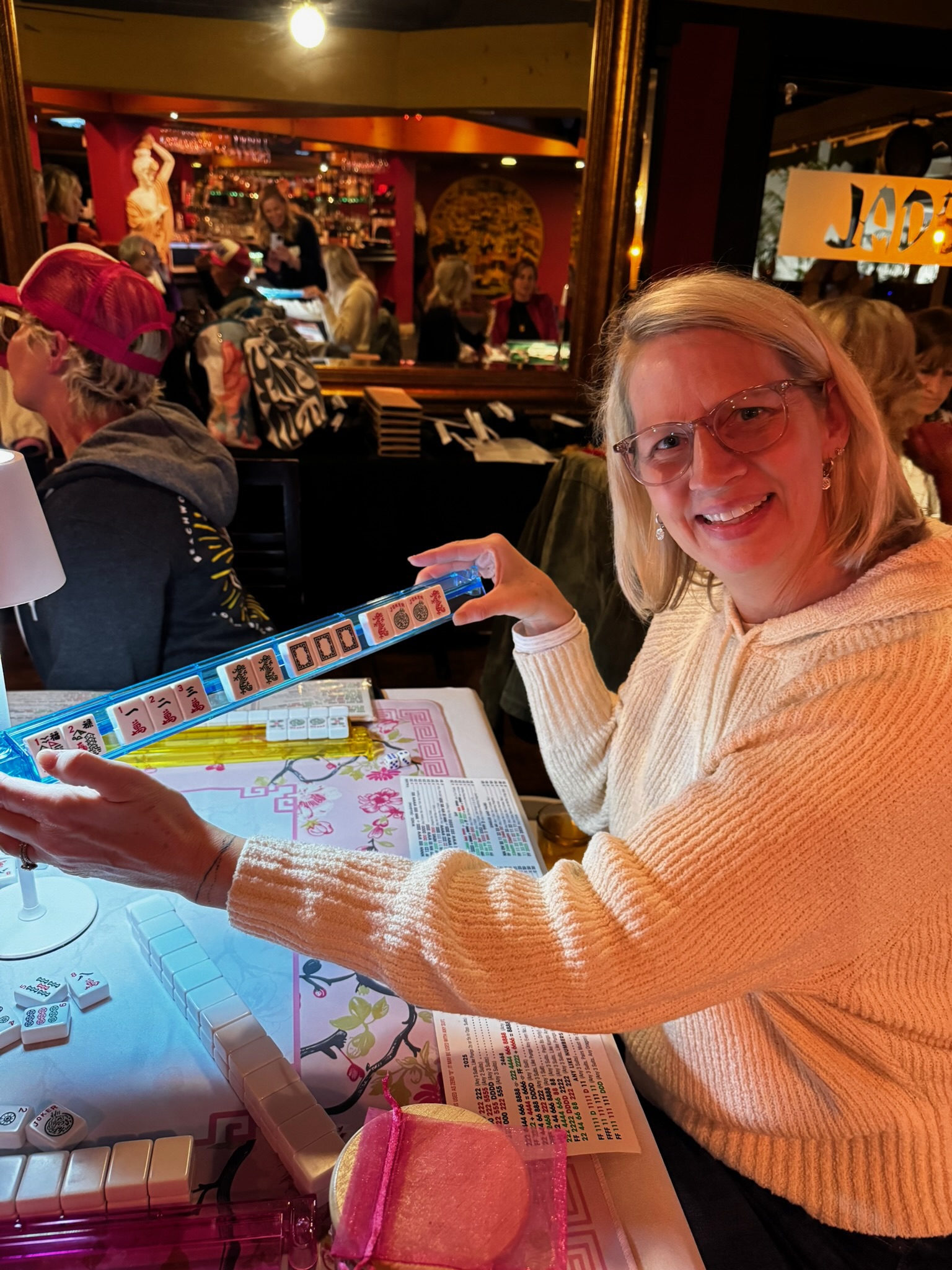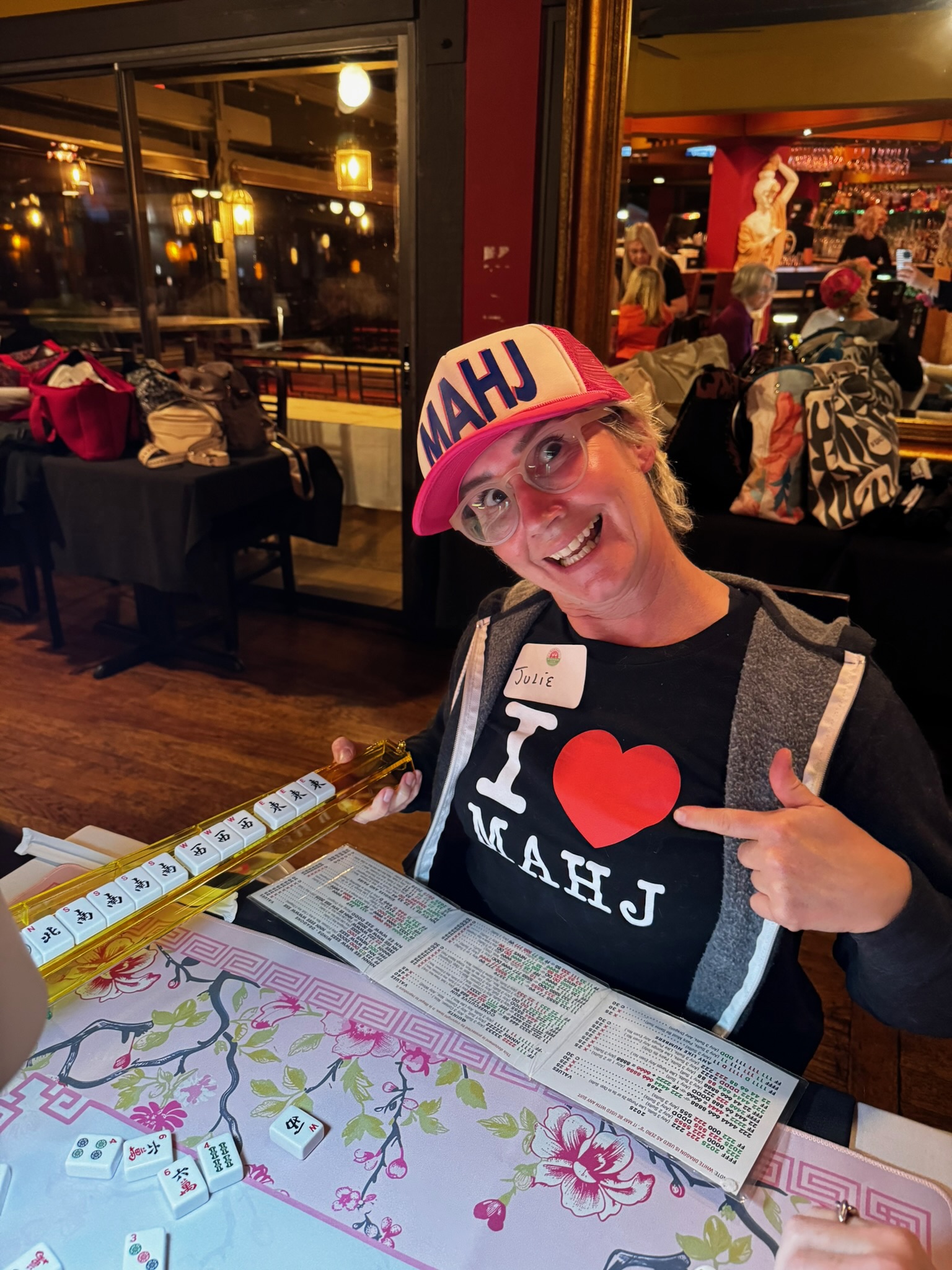 When we started learning Mahjong, we realized how challenging it can be. It’s a blend of culture, strategy, luck, and patience, and as Julia Roberts said, “Mahjong is making order out of chaos.” The only way to improve is to play, and since it’s best with four people, finding a group wasn’t always easy.